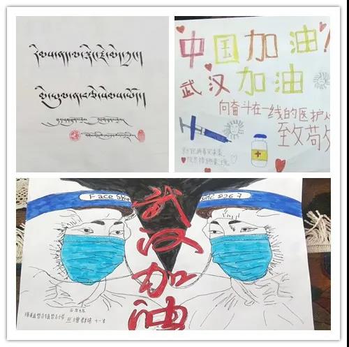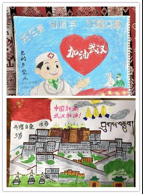 也许我们无法亲临疫区战场,但是这一幅幅画作都代表了藏区小朋友最热忱的心。远隔千山万水,我们的心却和在疫区一线战斗的叔叔阿姨、哥哥姐姐们站在一起,共同抗击这场艰难的战役。