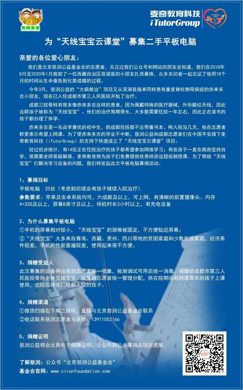 第二种:关注微信公众号直接发送私信“为天线宝宝捐平板电脑+联系人电话”