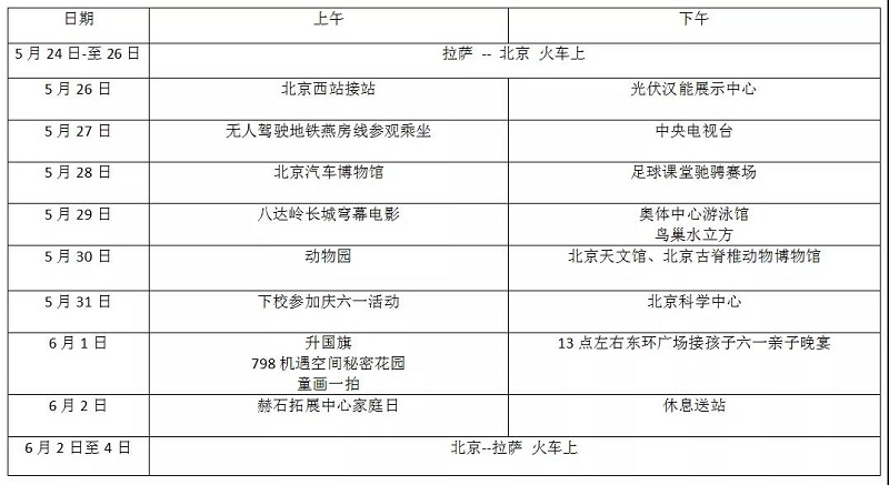 (2019年第十期“启航计划”公益助学西藏学生北京行程表)