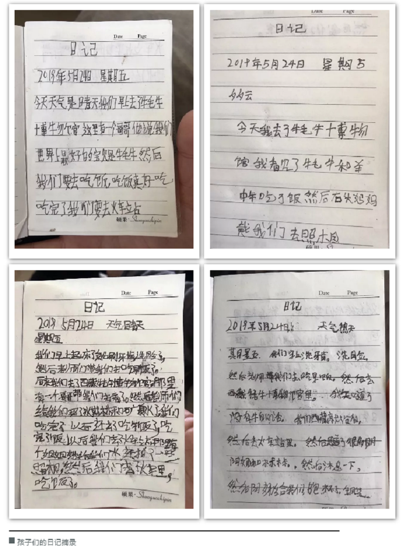歌唱比赛结束后,孩子们拿出自己写的日记,朗读了起来。